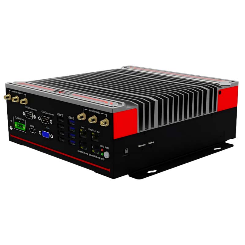 高性能 : 支持65W及以下6/7/8/9 代LGA1151 Intel Core i7/i5/i3 系列處理器 穩(wěn)定可靠 : 純工業(yè)設計,強勁解熱熱管與純銅一體化的優(yōu)良散熱結(jié)構(gòu),全密封鋁合金箱體,大面積鋁鰭散熱,可實現(xiàn)橫向與豎向等多種放置的自然對流散熱,機箱可抗接觸式6KV強電磁干擾,DC12V-24V寬壓輸入接口豐富 : 4*LAN(Intel),6*COM,支持T-MOD模塊擴展,8*GPIO(4*USB2.0/2*RJ45/2*CAN/12DI+12DO三選一擴展),4*USB3.0+4*USB2.0 1*VGA,1*HDMI,1*DP,1*遠程開關,1*一鍵還原,1*一鍵備份,1*SIM槽, 1*LINE IN,1*LINE OUT,1*MIC,1*2.5寸硬盤位,1*M.2(KEY-M,2280,PCIEx4支持SATA) , 1*M.2( KEY-B,3042/3052, PCIE+USB3.0支 持 4G/5G) , 1*MINI PCIE( 全 高 ,PCIE+USB2.0信號,支持WiFi/BT)外觀設計 : 鋁合金一體成型,結(jié)構(gòu)緊湊,MiNi小巧,工藝精細,科技時尚