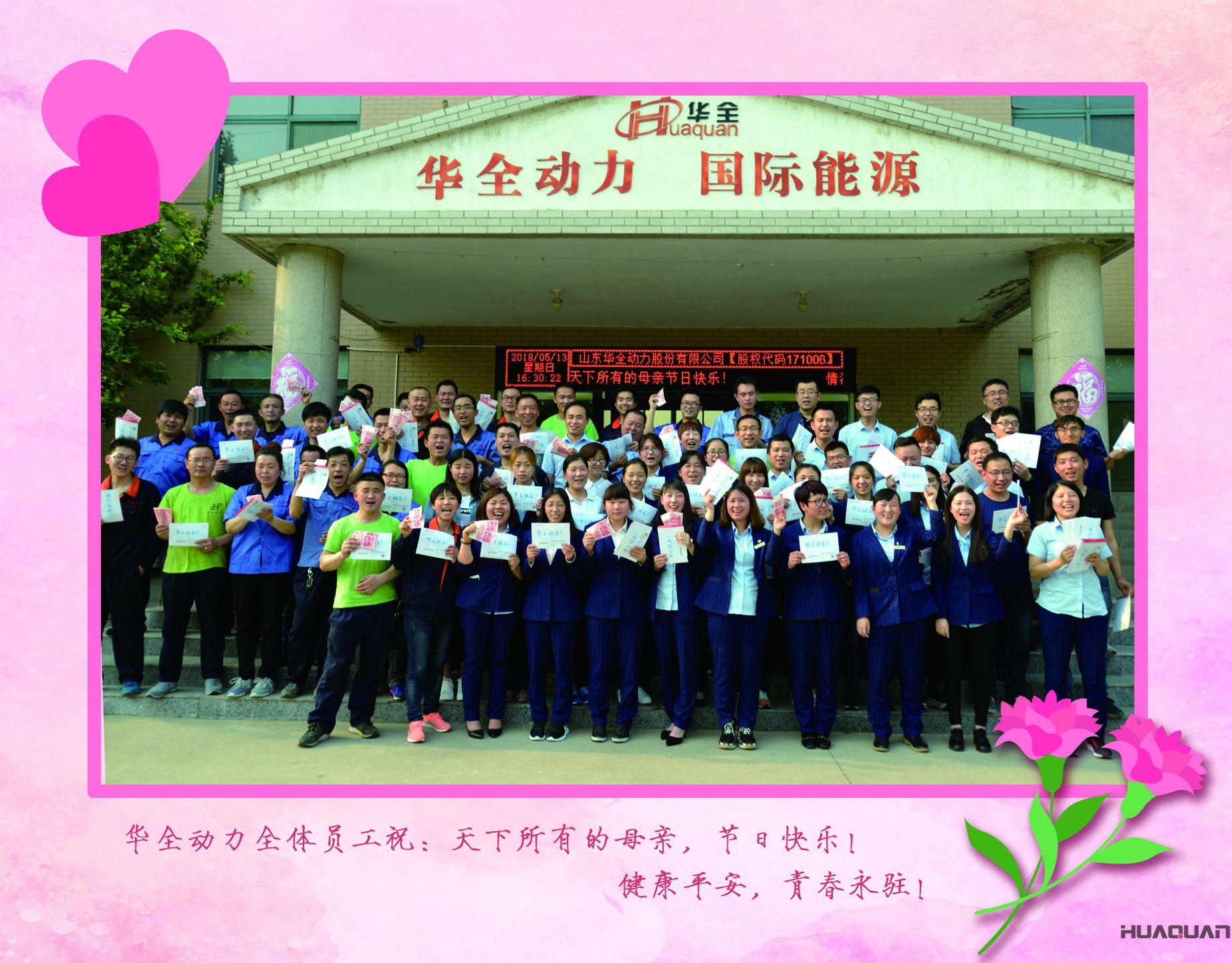 濃情五月,感恩母親!華全動力為每位媽媽準備了現金紅包和精美禮物 發布時間:2018-05-14