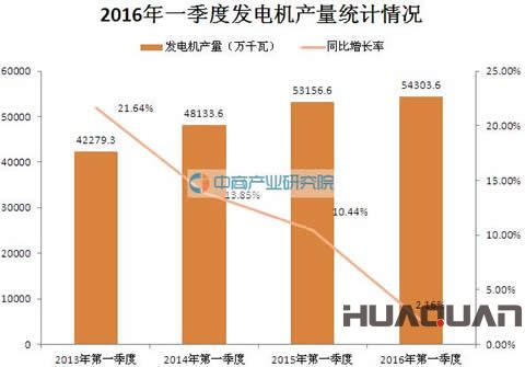 2016年一季度中國發電機產量統計分析 2016-05-12